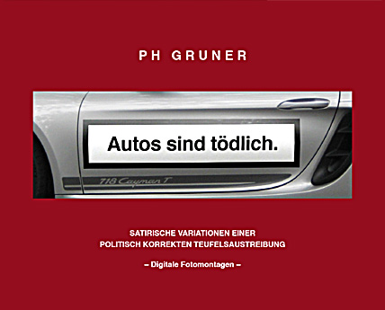 Mit bissiger Satire widmet sich PH Gruner in diesen digitalen Fotomontagen dem Automobil – dem „Fetisch des motorisierten Individualverkehrs“ .